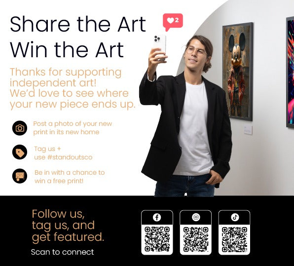 Snap a photo of your new piece in its perfect spot, tag us with #standoutsco, and show off your style. Not only will you inspire others, but you'll also have a chance to win a FREE print! Follow, tag, and connect with us to get featured and keep the creativity flowing. Your art deserves the spotlight—let’s make it happen!